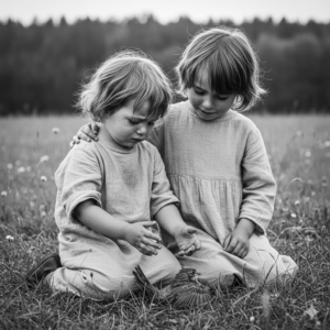 A imagem mostra a empatia em seu estado mais puro e menos "corrompido" pelas convenções sociais. A criança age por um impulso de cuidado e partilha ao perceber a tristeza da outra, exemplificando a bondade inata.