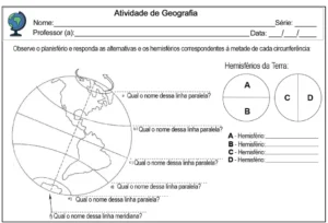 Atividade de Geografia Paralelos e Coordenadas Geográficas para imprimir, atividade...