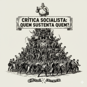 Mostra que a riqueza do topo é sustentada pelo trabalho da base, evidenciando a desigualdade na distribuição dos frutos da produção.