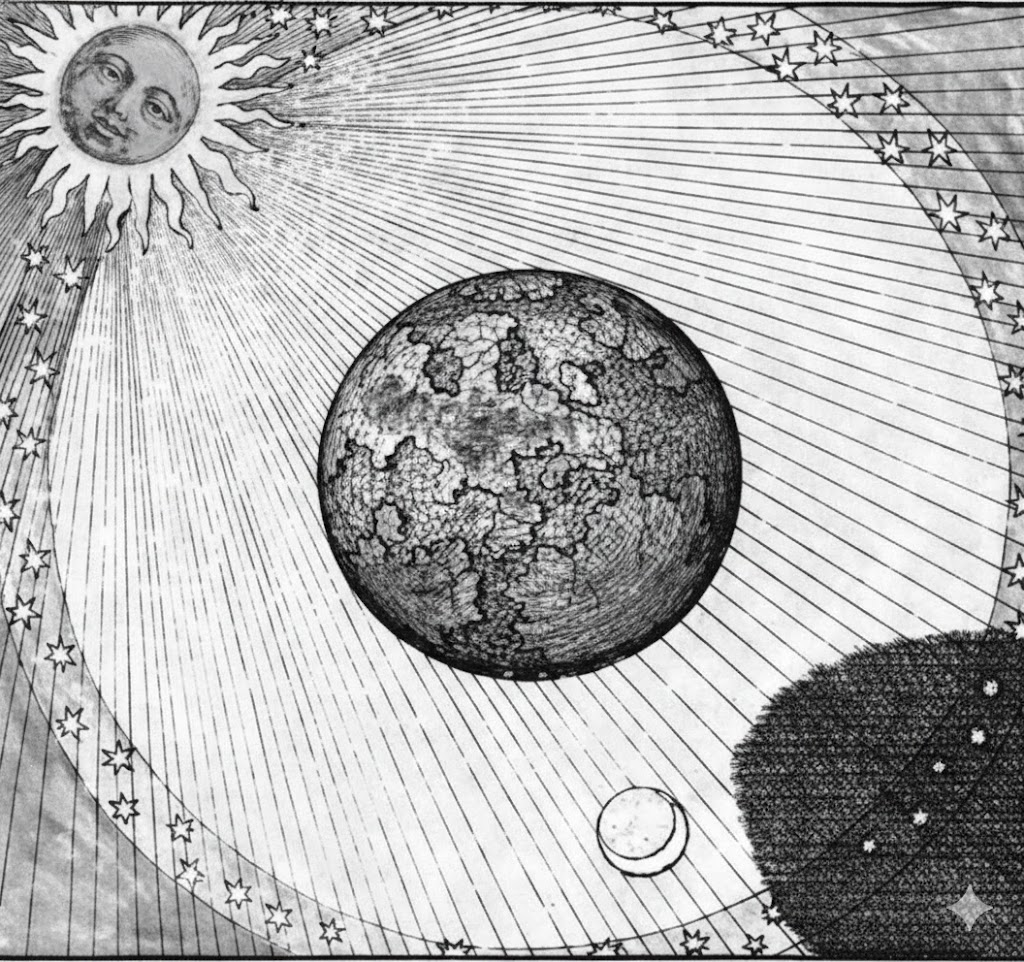 Aristóteles menciona que o espanto evolui das coisas próximas para os "fenômenos da lua e do sol". Como a contemplação do cosmos na imagem gera a atitude filosófica?