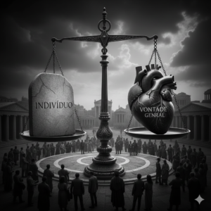 O lado do Interesse Público, pois a vontade geral busca o que é justo para o corpo social, e não o privilégio individual.