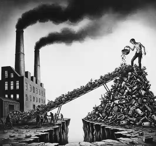 Como esta imagem ilustra a contradição entre produção e consumo em Marx?