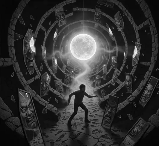 A imagem sugere que o que percebemos do mundo é frequentemente filtrado pelas nossas próprias "lentes" internas. Por isso, raramente vemos a realidade como ela realmente é, mas sim uma versão distorcida pelas nossas experiências e limitações humanas.