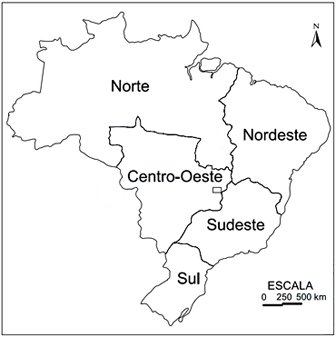 Analise o mapa de divisão regional do Brasil (IBGE).