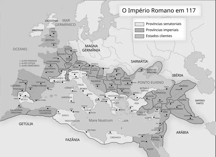 Observando o mapa do Império Romano em sua máxima extensão, é correto afirmar que: