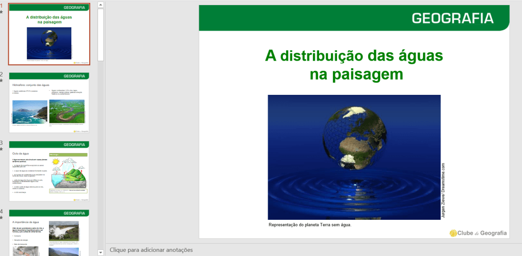 Slides: A distribuição das águas na paisagemAula Geografia sobre Água Slides Aulas Sobre a Água, Geografia distribuição da água, PowerPoint Água
