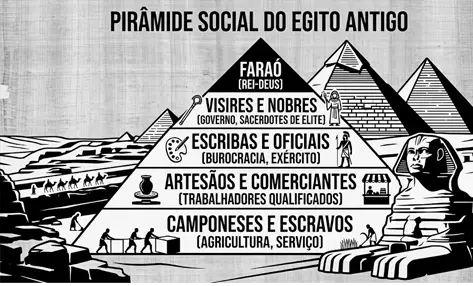 Pirâmide Social do Egito Antigo:Ao observar a pirâmide social do Egito, por que a base é muito mais larga que o topo?