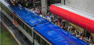 Questão 10 – Passageiros aguardam o embarque na estação de trem que liga a cidade de São Paulo à região do Grande ABC