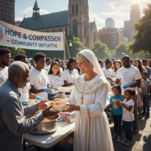 A imagem mostra um líder religioso em uma ação social. Isso faz parte do papel de uma liderança? Por quê?