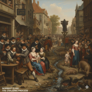 Para o sociólogo Norbert Elias, a "civilização" não é um estado estático, mas um processo contínuo que ele chama de Sociogênese (mudanças na estrutura social) e Psicogênese (mudanças na estrutura psíquica). Elias mostra que comportamentos que hoje consideramos "nojentos" ou "feios" (como comer com as mãos ou cuspir no chão) eram comuns na Idade Média. A civilização é, portanto, o aumento do autocontrole e do limiar da vergonha e do nojo.