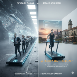 A imagem mostra que, embora todos pareçam estar na mesma "corrida", a estrutura (a pista) coloca obstáculos históricos para negros e indígenas.