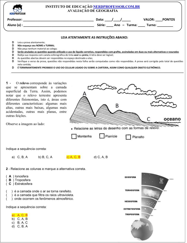 Prova Clima e Relevo – Prova GeografiaProva Clima e Relevo, Prova Clima, Prova Relevo, Prova Geografia Clima, Prova Geografia Relevo