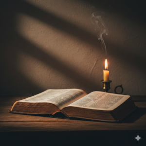 A Bíblia é o livro mais distribuído do mundo. O que a combinação do livro com a luz da vela sugere no contexto religioso?
